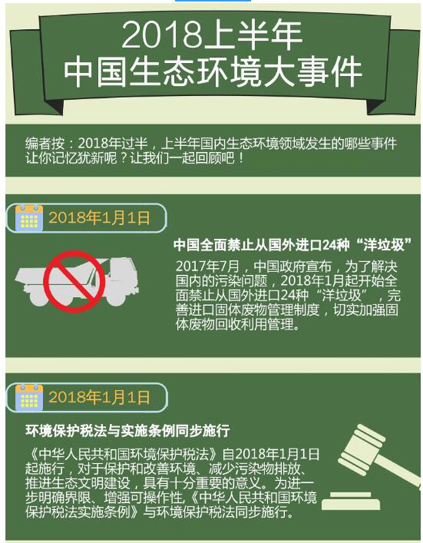 從環(huán)保稅到環(huán)保督查,上半年的生態(tài)環(huán)境事件都圍繞“生態(tài)環(huán)境治理總體改善”展開。