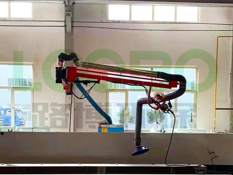 3.焊機(jī)吸氣臂一端固定于廠房立柱,前端搭載二氧化碳送絲機(jī),作業(yè)覆蓋面積大,臂長(zhǎng)可選2米-10米的大半徑,可在任意角度停留,為焊接除塵提供有力保障。