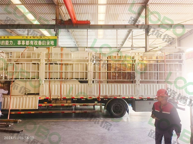 焊接車間煙塵治理工程設備裝車發(fā)貨。