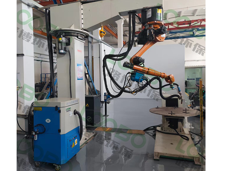 隨著制造業(yè)向自動化、柔性化與智能化方向飛速發(fā)展,機器人焊接已成為焊接技術現(xiàn)代化的核心標志。焊接機器人以其通用性強、可靠等優(yōu)勢,在生產(chǎn)中日益普及。然而,焊接過程中產(chǎn)生的煙塵、電弧光及金屬飛濺等污染問題,并不會因為人工被替代而自動消失。這些污染物不僅嚴重惡化車間環(huán)境,危害職業(yè)健康,還可能附著于機器人光學傳感系統(tǒng)或運動部件表面,長期累積影響其定位精度與運行穩(wěn)定性,導致產(chǎn)品質量下降。因此,高效的機器人焊接除塵已成為保障制造體系高品質、可持續(xù)運行的必要環(huán)節(jié)。